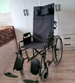 Кресло-коляска складная, ширина сидения 48 см. Стальная рама. Регулируется угол наклона спинки и подножек.