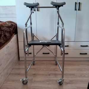 Ходунки с регулируемой по высоте подмышечной опорой. Подходят для узких проходов ( 55 см). На двух колёсах - тормоза.