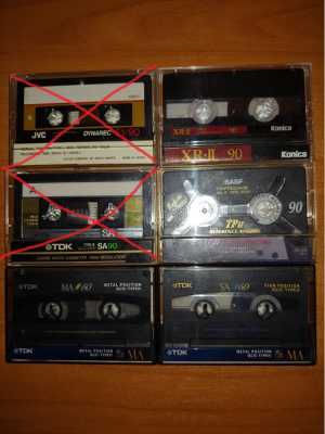 Аудиокассеты: TDK MA 60 - 900р. TDK SA 60 - 250р. BASF TP II 90 - 990р. KONICA XR-II 90 - 450р.