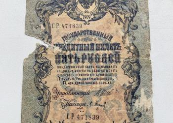 Продам банкноты царской России. 5 рублей 1909 года и 3 рубля 1905 года.