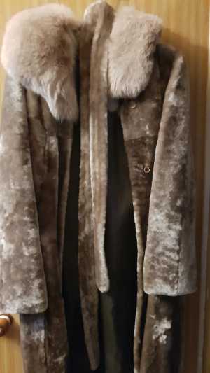 Шуба мутон ,ворот из песца ,размер 48 .с поясом. Разрезы по бокам ,3 фото.