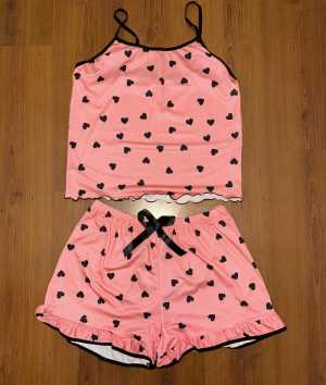 Новая Пижама розовая с сердечками Пояс на резинке Материал полиэстер Размер 50-52 Топ длина 43 см Ширина 45...