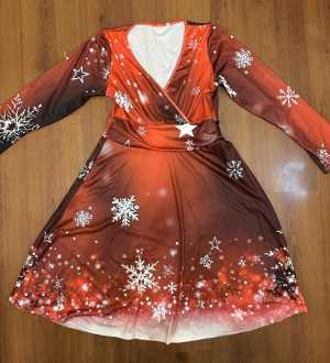 Новое Платье новогоднее, красное со снежинками Полиэстер Размер 48 Длина 104 см Ширина по груди 48 см Рукав 61 см...