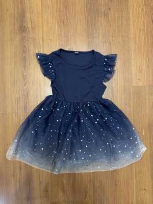 Новое Платье синее со звездами Полиэстер Размер указан 100, но возможно маломерит Подойдет на 80 см Замеры на фото
