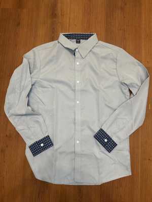 Новая Мужская рубашка Классическая, серого цвета с акцентными манжетами.