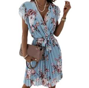 Новое Платье женское с цветочным принтом и V образным вырезом , с поясом Длина 96 см Полиэстер