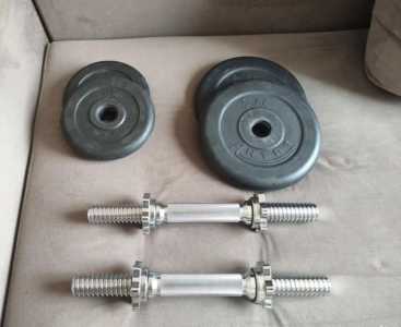 Цена за всё 6800р. Могу отдать по отдельности. . Гриф 2 шт. по 2кг. (Новые) = 2000р. Диски 2 шт. по 5кг = 2400р.