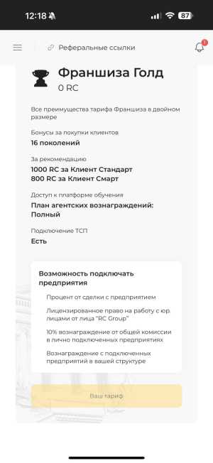Продам франшизу RC group на максимальном тарифе VIP GOLD за 250 тыс.