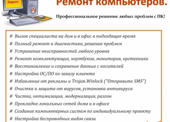 Качественно и быстро отремонтируем ваш компьютер или ноутбук. Диагностика и выезд бесплатно.
