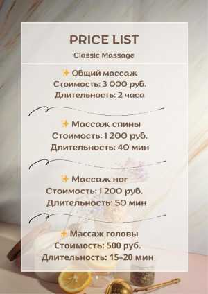 Массаж: - Расслабляющий - Лечебный - Классический - Точечный - Общий всего тела - Массаж ног и ягодиц - Массаж шеи...