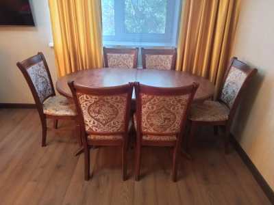 СРОЧНО Продаю стол со стульями (6 стульев) из массива дерева, покупался 1.5 года назад. Использовался для сбора гостей.
