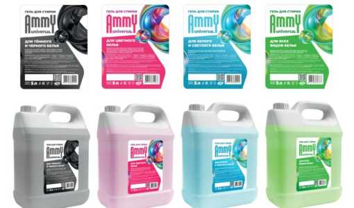 Гель для стирки "AMMY" в канистрах по 5 л. Универсальный, для белого белья, для цветного белья, для темного и черного белья