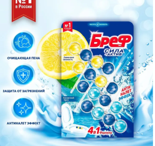 Средство чистящее для ванной и туалета Аромат Лимон Форма выпуска средства Сменный блок Бренд Бреф Название аромата...