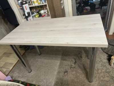 Новый стол из лдсп, цвет финдус, толщина столешницы 32 мм, кромка пвх 2 мм. Хром ноги регулируются по высоте.