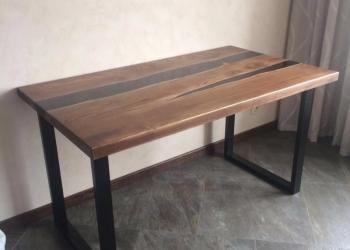 Стол из слэба натурального дерева карагач с "голубой рекой" из эпоксидной смолы Подстолье металлическое и покраской...