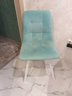 Стул велюровый 3 штуки, цвет бирюзовый, ножки белые