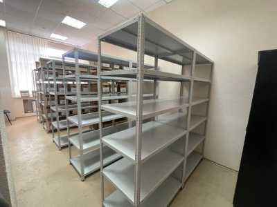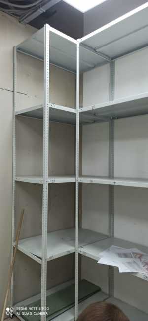 Стеллаж большой, высота 3, длина 2, 7, глубина 60,по пять полок на секцию с ребром жёсткости и с усилением, состояние...