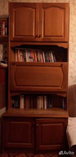 Секция из ДСП с деревянными вставками (дверцы, элементы декора) в хорошем состоянии. 🗄️✨ Всего три секции: 1) Верхняя.