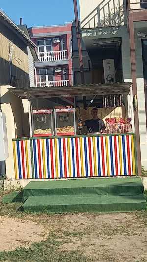 Здравствуйте! Предлагаю вашему вниманию уютный и яркий торговый ларек, идеально подходящий для продажи вещей и продуктов.