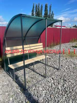 Каркас металлический, сотовый поликарбонат, доски на лавочки и стол в комплекте, крепёж.
