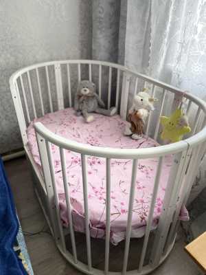 Продам детскую овальную кроватку,в хорошем состоянии,10-12 функции трансформации,со всеми дополнениями Матрас(трансформер...