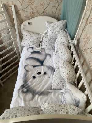 Детская кровать (универсальный маятник), комплект с мягкими бортиками и матрас, все как на фото в отличном состоянии
