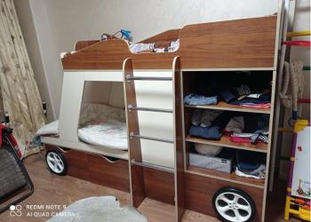 Продам кровать двухярусную в форме джипа, 170 *85, два спальных места, удобные выдвижные ящики глубиной 80 см, дверца...