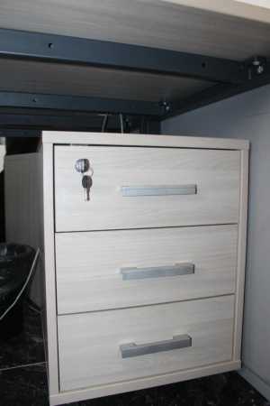 В целом состояние хорошее. Есть небольшие коцки на подставке для компьютера и ящике. Подставки для дисков можно снять.