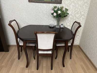 Продаётся стильный раздвижной деревянный стол с набором из 3 мягких стульев.