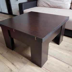 Журнальный стол двух цветов: Молочный дуб и Венге. Очень практичен для обеда и других домашних вещей.