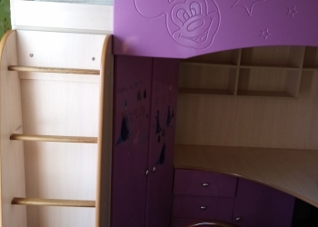 БУ Кровать в хорошем состоянии со шкафом и кроватью на втором ярусе, стол для учёбы и полки для книжек,матрац в комплекте...