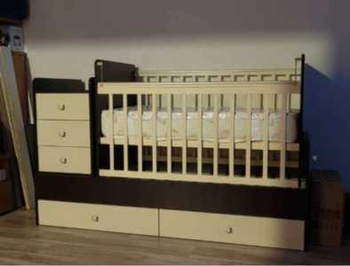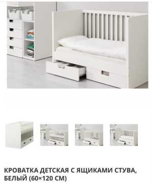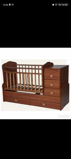 Продаю детскую кроватку. Почти новая, спали несколько раз. В комплектации два выдвижных шкафчика. Один бортик регулируется.