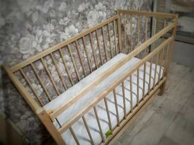 Продам детскую кроватку из дерева крепкая, есть вместительный ящик для белья, матрас 120-60 см