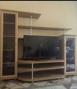 Продается стенка под телевизов с вместительным шкафом и полками, в хорошем состоянии. Высота 2.19 м., ширина 3.5 м..