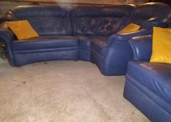 Продам мягкую угловую кожаную мебель синего цвета, б/у.