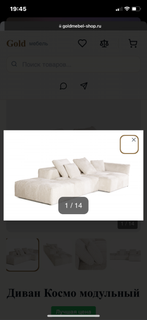 Модульный диван Космо в цвете Молочный (THERAPY 007), обивка велюр.
