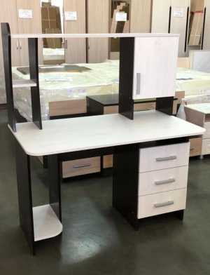 Надежный, крепкий письменный стол. Имеется выдвижная полка для клавиатуры/ноутбука. Очень вместительные ящики.