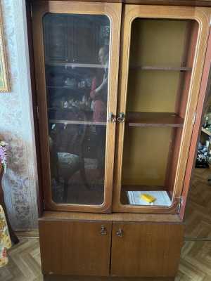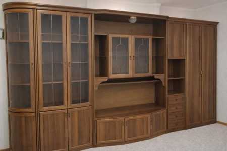 Стенка в гостиную советская, полированная, состоящая из нескольких секций.