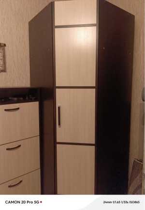 Угловой шкаф не дорого. Шир боковой стенки 58см Шир дверцы 42см. Глубина 90см. Высота220см.