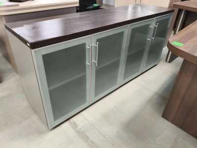 Шкаф для ТВ с полками , передвижной на колесах, дверцы из стекла,