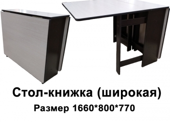 Производим и продаем столы-книжки в ассортименте: 1) Узкий, в разложенном виде размеры: длина 1550мм, высота-750мм, ширина...