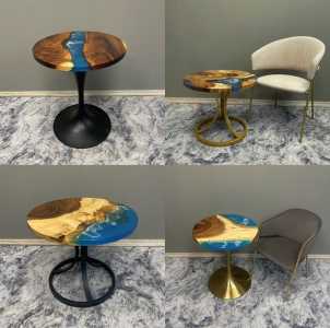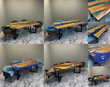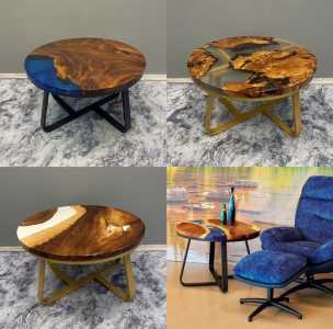 Столы из натурального дерева (массив/слэб) и эпоксидной смолы.