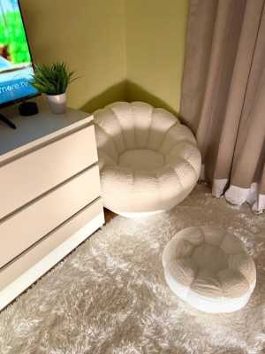 Продаются большие мягкие пуфики белого и серого цвета.