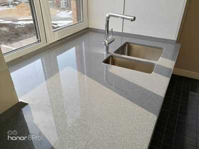 Продам светлый кухонный гарнитур. Белая глянцевая столешница. Тумба под накладную мойку.