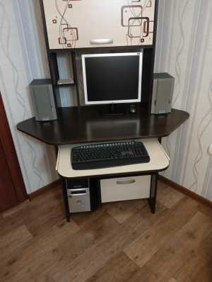 Добрый день. Продаю угловой компьютерный стол в хорошем состоянии. Выполнен из ЛДСП, цвет темно-коричневый, текстурный.
