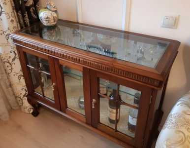 Буфет/бар в классическом стиле: стекло, красное дерево, ручная работа. Индонезия.