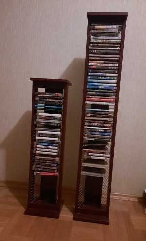 Две подставки-стойки для дисков (CD, DVD, Blu-Ray) в идеале. Высота - 133 см и 93 см.