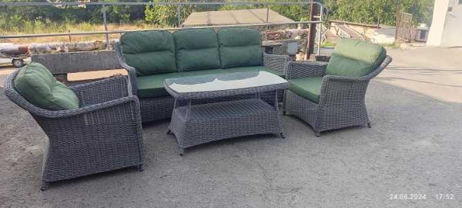 Продаю новый комплект мебели из искусственного ротанга. Комплект состоит из стола (160*96) 4 кресел и 2-х местной лавки.