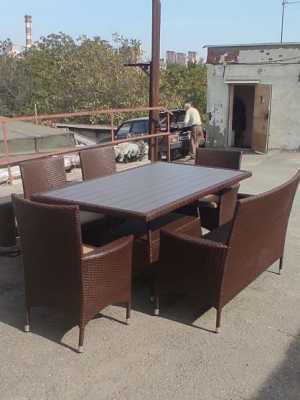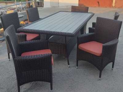 Продаю новый комплект мебели из искусственного ротанга на 6 человек. Состоит из 6 кресел и стола 200×96 см.