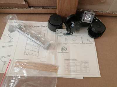 Новые, ненужные детали от этажерки. Колеса мы заменили сразу на подпятники, а ручка вообще запечатанная в заводской упаковке.